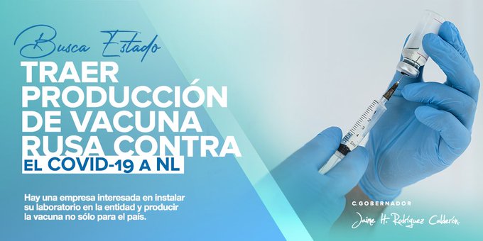 Rodríguez Calderón señaló, a través de redes sociales, que el secretario de Salud de la entidad, el Dr. Manuel de la O, sostuvo reunión virtual con empresarios rusos, quien notificó que hay un laboratorio de dicho país interesado en instalarse en la entidad para llevar a cabo la producción de la vacuna contra el nuevo coronavirus.
