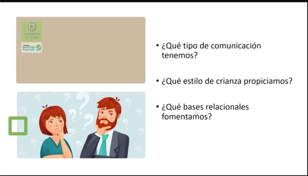 Como padres y madres, dijo por último, “comunicamos el amor o el desamor y nuestros hijos lo revisan, se les adhiere a su estructura psíquica, se hace parte de su piel psíquica y no se olvida; se puede resignificar, pero eso implica mucho trabajo, por eso, es mejor volverse conscientes de estas situaciones y utilizar las herramientas o insumos que ya existen para mejorar los estilos de crianza y decidir qué se fomenta y qué no en los hijos e hijas, sobre todo en días de confinamiento por la pandemia”.