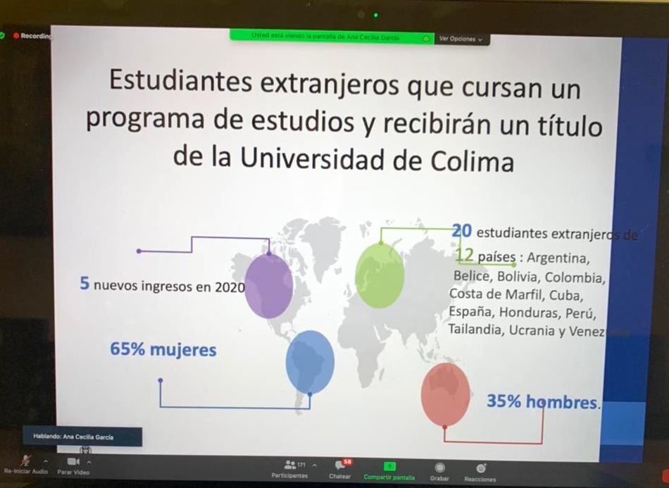 Desde este miércoles y hasta el viernes 12 de febrero, la Universidad de Colima, a través de su Dirección General de Relaciones Internacionales y Cooperación Académica, imparte el taller virtual “Internacionalización en casa” a más de doscientos académicos, investigadores y administrativos de la Universidad Nacional de Agricultura (UNAG), de Honduras.