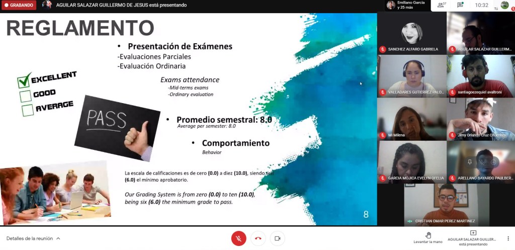 En su momento, el responsable en la Universidad de Movilidad con Países de Europa, Christian Omar Pérez Martínez, explicó el reglamento para estudiantes de movilidad, así como los criterios de evaluación y la importancia de mantenerse en contacto con tutores de movilidad para poder realizar una experiencia satisfactoria.