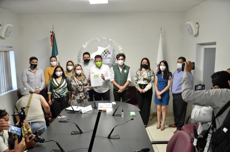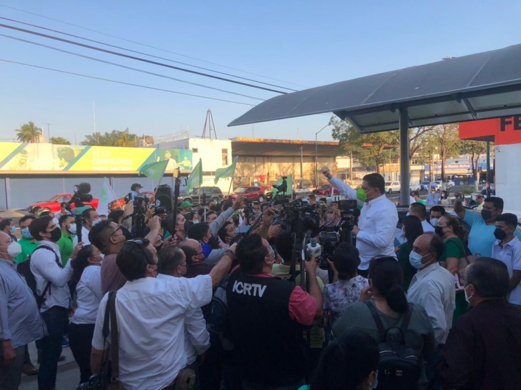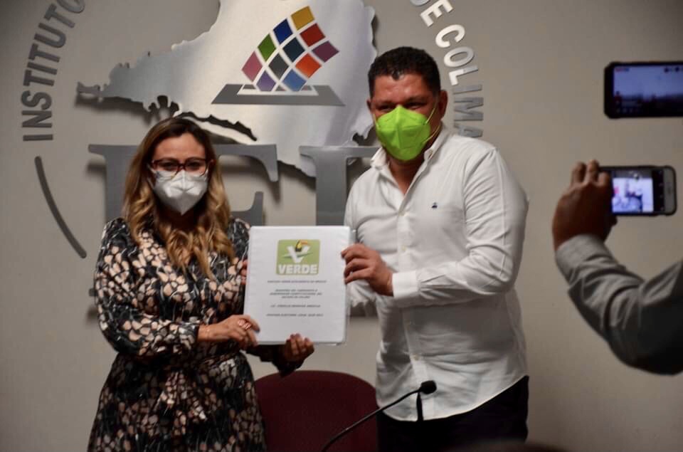 Este día, ante una nutrida asistencia de simpatizantes, Virgilio Mendoza presentó su solicitud de registro como candidato del Partido Verde Ecologista de México a gobernador del Estado, ante el Instituto Electoral del Estado de Colima.