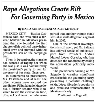 El pasado 3 de marzo, las acusaciones de abuso sexual contra Félix Salgado Macedonio, quien aún busca la candidatura a la gubernatura de Guerrero por Morena, formaron parte de la primera plana de The New York Times.