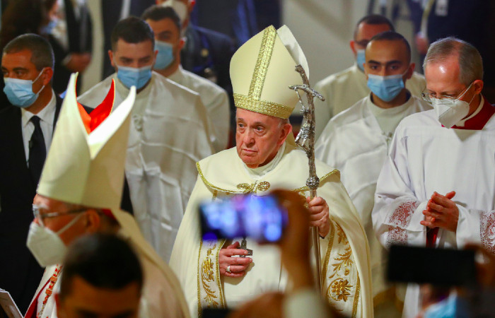 El Papa Francisco llega para dirigir una misa en la Catedral Caldea de “San José” en Bagdad, Irak, el 6 de marzo de 2021. | Foto: Reuters