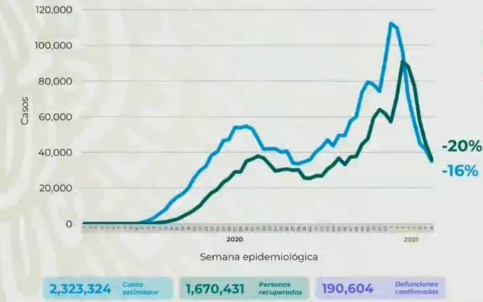 La Secretaría de Salud informó este domingo que en México suma 2 millones 128 mil 600 casos y 190 mil 604 muertes confirmadas por COVID-19.
