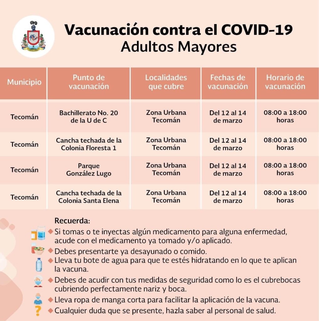 Se están actualizando los puntos de vacunación constantemente por el avance que se tiene a diario, también se avisará cuando lleguen más vacunas para las demás comunidades y cabeceras municipales del resto de los municipios de Colima.