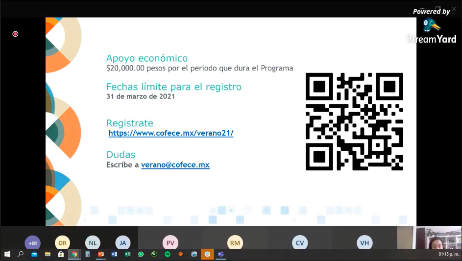 Los interesados en participar en el verano COFECE pueden registrarse en la página http://www.cofece.mx/verano21/ y en caso de duda escribir al correo verano@cofece.mx.