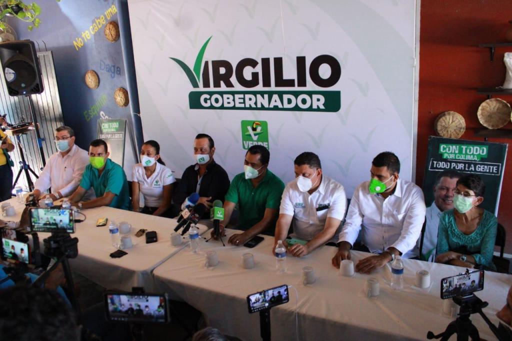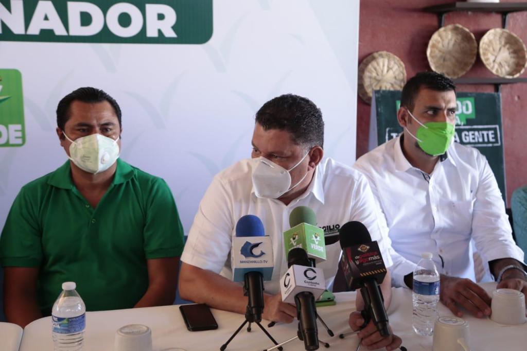 El candidato por el Partido Verde Ecologista de México a Gobernador del Estado de Colima presentó este martes en rueda de prensa al equipo que lo acompañará en la fórmula Verde en el municipio de Armería.