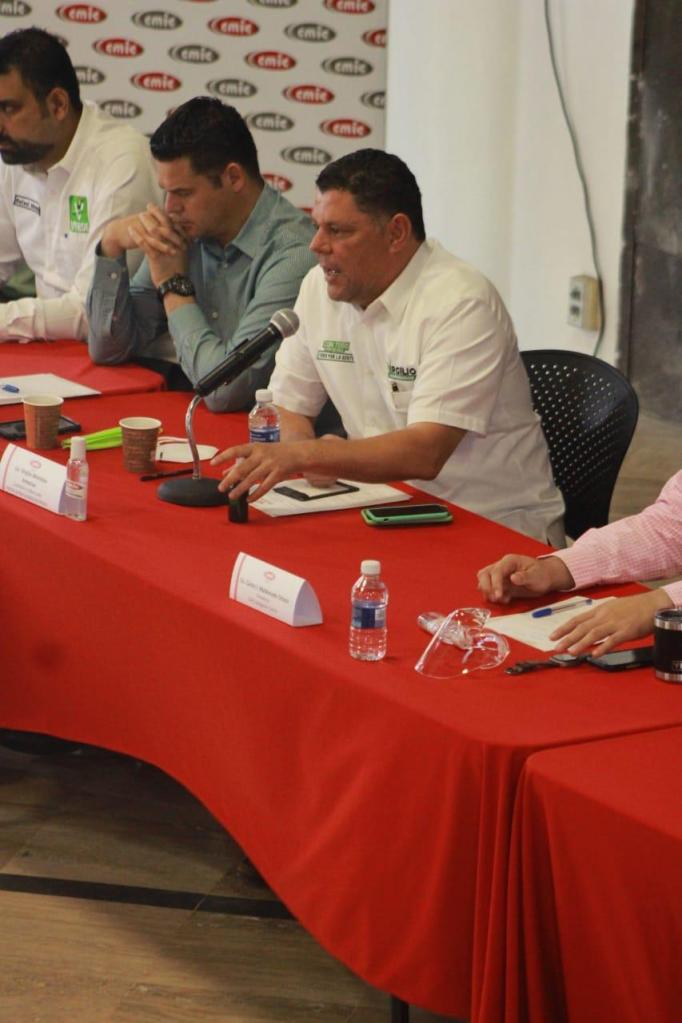 En su intervención, Carlos I. Maldonado Orozco, Presidente de la CMIC delegación Colima, dijo que recibir al candidato y las candidatas a la gubernatura se desprende de una responsabilidad social, como ciudadanos y empresarios miembros de un gremio que ha sido altamente golpeado; en este contexto, expresó: “recogiendo las impresiones e inquietudes y vivencias de los compañeros afiliados, decirte que en los últimos dos años hemos tenido un decrecimiento de cerca del 50% de inversión en obra pública, nuestra industria se encuentra sumamente lastimada. Adicionalmente los proyectos de gran envergadura del Gobierno Federal se encuentran básicamente en el sureste del país, sabrás que hoy el Gobierno Federal ha convertido al Ejército en la mayor constructora del país, es una competencia desleal. Se le asignan proyectos de manera directa, en lo local con la construcción de cinco cuarteles de la Guardia Nacional por ejemplo”.
