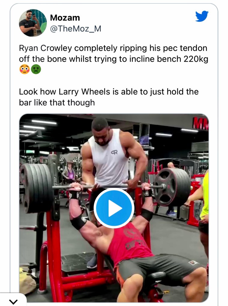 El joven fue grabado mientras estaba cargando pesas; sin embargo, en un momento carga más de lo debido y lleva su esfuerzo al límite lo que provoca que el tendón de su pectoral se desprenda de su hueso.