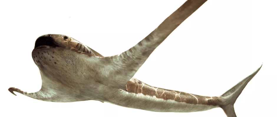 Un tiburón muy particular con aletas parecidas a una alas y una boca ancha y abierta surcaba el mar hace unos 93 millones de años, cuando los dinosaurios aún vagaban por la Tierra, revela un nuevo estudio.