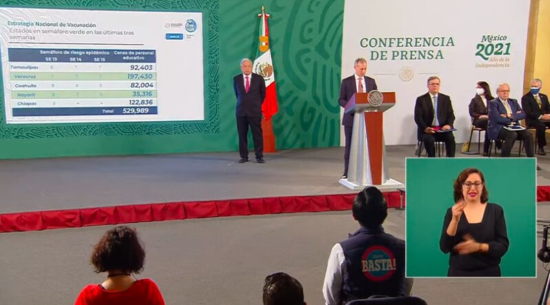 El Gobierno federal prevé iniciar próximamente la vacunación contra COVID-19 para maestros y maestras y personal educativo en general en los estados de Tamaulipas, Veracruz, Coahuila, Nayarit y Chiapas, informó este martes Hugo López-Gatell, subsecretario de Salud.