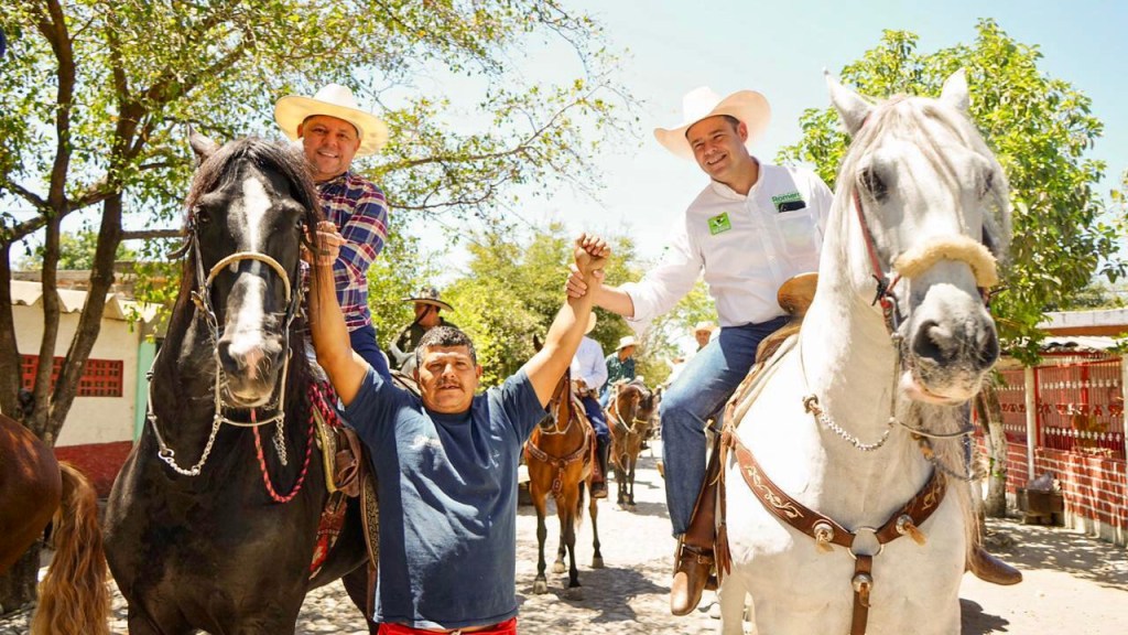 Una festiva cabalgata reunió, este sábado, a los abanderados del Partido Verde Ecologista de México, Virgilio Mendoza, candidato a la gubernatura; a Guty Morales, candidato a diputado por el Distrito Federal 1, y a José Manuel Romero Coello, candidato a la alcaldía de Colima, misma que contó con el apoyo del exgobernador Mario Anguiano Moreno, quien además sumó a Don Esteban Gómez de la Madrid, amigo personal del exgobernador y hombre de a caballo muy respetado, entre otros otros distinguidos personajes del mundo de a caballo.