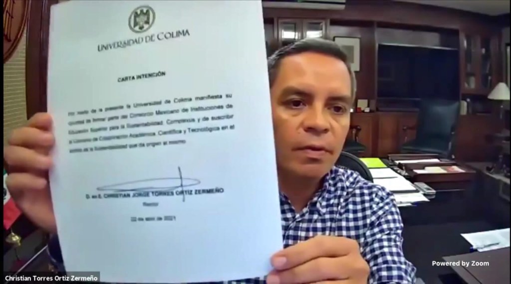 Este jueves, con motivo del veinte aniversario de creación del Consorcio Mexicano de Programas Ambientales Universitarios para el Desarrollo Sustentable (Complexus), la Universidad de Colima, junto con otras trece Instituciones de Educación Superior del país, ratificó, con una carta de intención y de manera virtual, su compromiso permanente con la sustentabilidad.