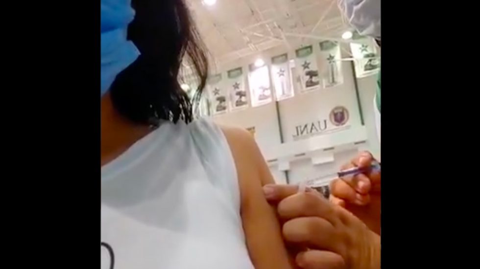 A través de redes sociales, la profesora Ariana Ávalos, difundió un video en el que se observa el momento en el que una enfermera le aplica la inyección, pero supuestamente no le suministra el líquido de la jeringa.