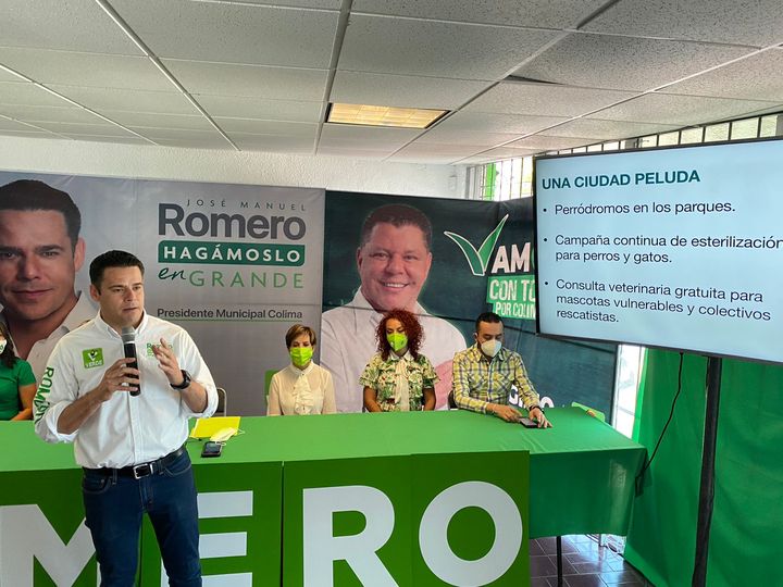 El candidato a la Alcaldía de Colima, José Manuel Romero Coello, detalló el segundo eje rector de sus propuestas de gobierno “Hagamos una Ciudad Verde”, en donde destaca la creación de perródromos en los parques.