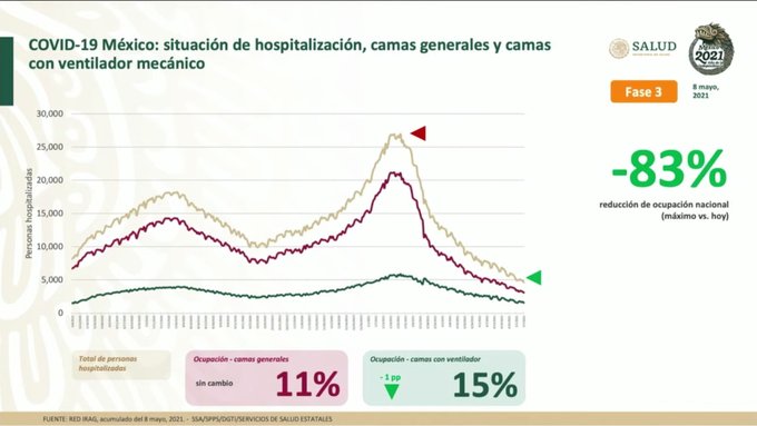 Se informó de que la ocupación media de camas generales en los hospitales mexicanos es del 11 por ciento, y del 15 por ciento en cuanto a camas de terapia intensiva con respirador.