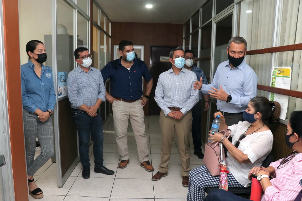 Acompañado de varios de sus funcionarios y funcionarias principales, Christian Torres Ortiz recorrió parte de las instalaciones del campus Colima y platicó con trabajadores, docentes e investigadores para conocer sus problemáticas.