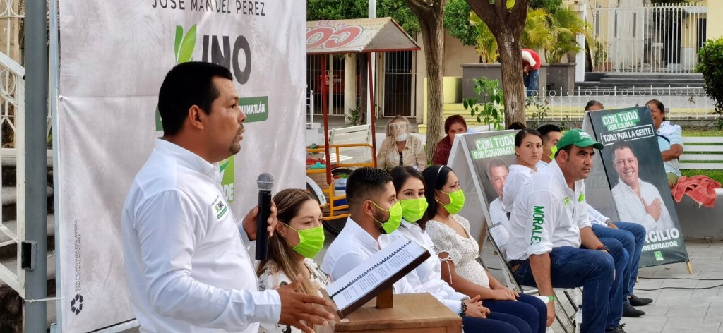 Ante una gran cantidad de simpatizantes que se dieron cita en el jardín principal de Pueblo Juárez, el candidato del Partido Verde a presidente municipal de Coquimatlán, José Manuel Pérez “Kino”, presentó el día de ayer una serie de propuestas para abatir la carencia del vital líquido, una de las problemáticas más sentidas y que más afectan a la población coquimatlense, tanto de la cabecera municipal como de sus comunidades.