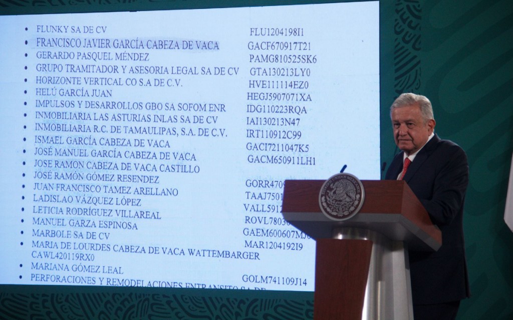 Al solicitar a su vocero, Jesús Ramírez, que mostrara la solicitud de información del Departamento de Justicia del gobierno estadounidense sobre Francisco García Cabeza de Vaca, López Obrador también dejó al descubierto otros nombres de personas y empresas de México.