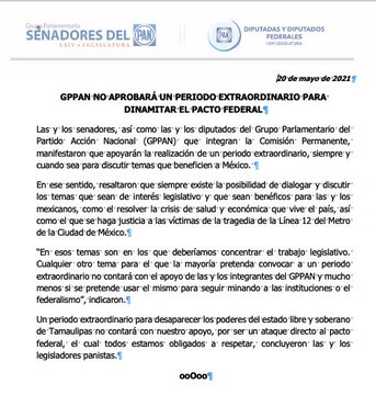 La periodista Leticia Robles de la Rosa reportó que con el posicionamiento de Movimiento Ciudadano, Morena no tendrá el voto que necesita para convocar al periodo extraordinario en el Senado de la República.