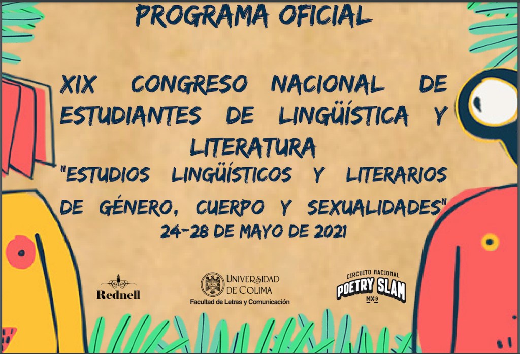 La Universidad de Colima, a través de su Facultad de Letras y Comunicación, será la sede virtual, del 24 al 28 de este mes, del XIX Congreso Nacional de Estudiantes de Lingüística y Literatura, dedicado a los “Estudios lingüísticos y literarios de género, cuerpo y sexualidades”. Este congreso lo organiza la Red Nacional de Estudiantes de Literatura y Lingüística (REDNELL).