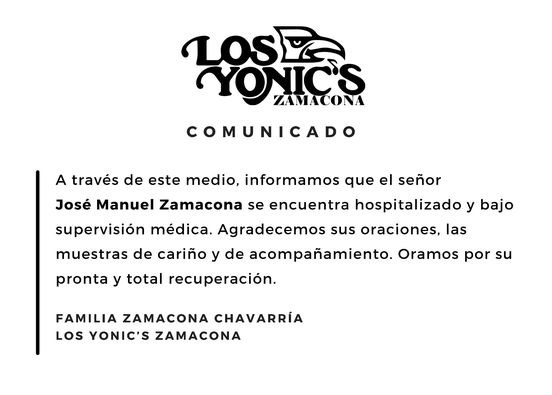 José Manuel Zamacona, líder de ‘Los Yonic’s’, fue hospitalizado este jueves y se encuentra bajo supervisión médica.