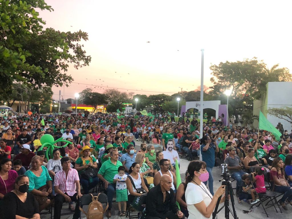 Miles de familias tecomenses se reunieron la tarde de este sábado en el parque Insurgentes, para participar en el multitudinario cierre de campaña en Tecomán de los candidatos del Partido Verde Ecologista de México.