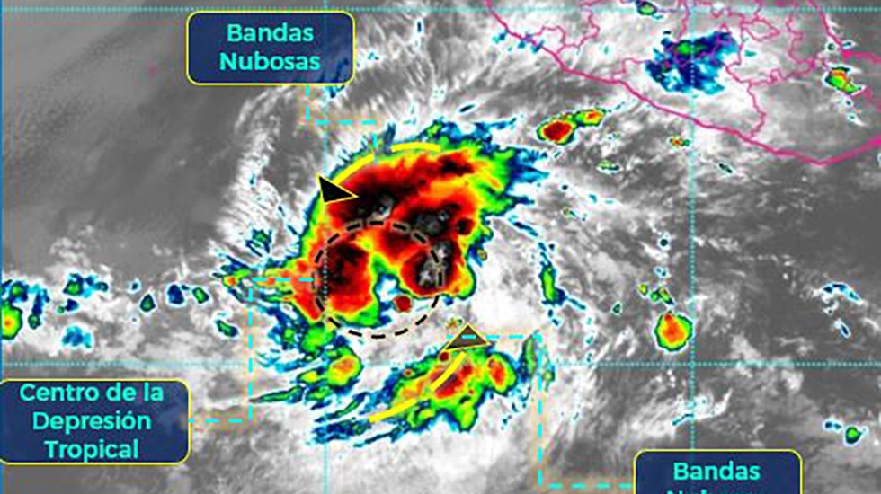 Hasta la mañana de este lunes la depresión tropical Dos-E se encontraba al suroeste de Michoacán, con bandas nubosas reforzando el aporte de humedad hacia Jalisco, Colima, Michoacán y Guerrero.