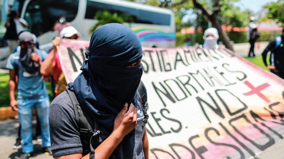 A pesar de este aviso, horas más tarde, unos 50 estudiantes y maestros mexicanos se manifestaron en laCiudad de México haciendo pintadas y lanzando cohetes en la sede de la Fiscalía General de la República(FGR) para pedir la liberación de los 19 estudiantes encarcelados en Chiapas.
