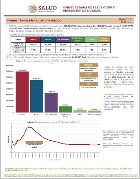 La Secretaría de Salud informó este domingo que en México suman 2 millones 454 mil 176 casos confirmados y 230 mil 148 muertes por COVID-19