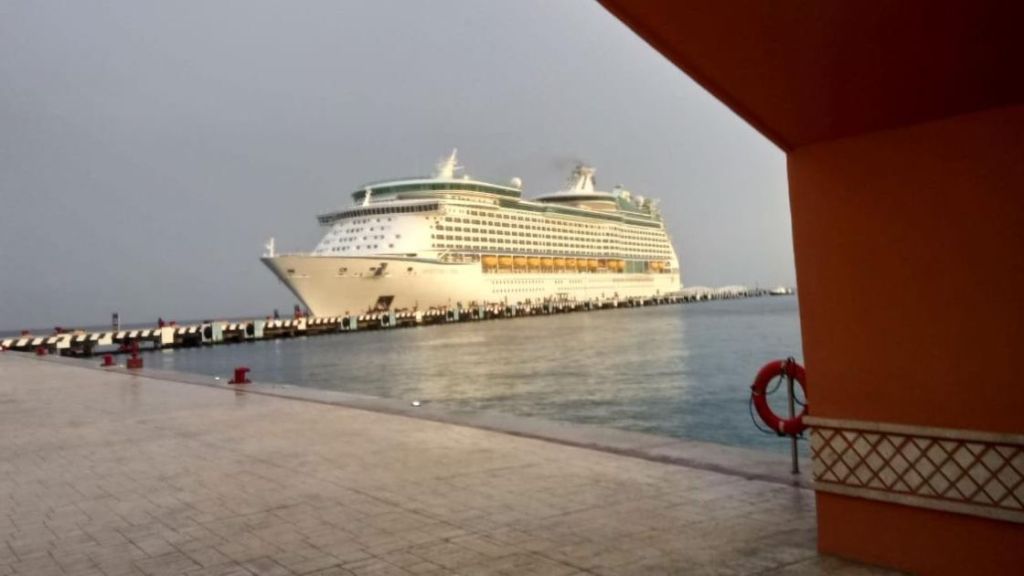 Cozumel, QRoo.- Alrededor de las 6:30 de este miércoles arribó a Cozumel el crucero Adventure of the Seas, el primero luego de 15 meses de no recibir un sólo barco a consecuencia de la pandemia de Covid-19.