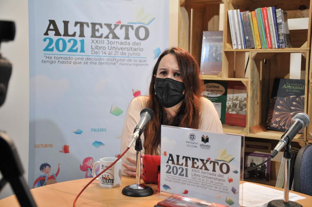 Como primera actividad de la feria del libro Altexto 2021de la Universidad de Colima, este martes la Dra. Elba Sánchez Rolón, directora del Programa Editorial de la Universidad de Guanajuato y coordinadora nacional de la Red Altexto, dictó de manera virtual, desde el estudio de Televisión Universitaria, la conferencia “Visibilidad de las publicaciones académicas: el trabajo en redes y las necesidades de diálogo con los investigadores”.