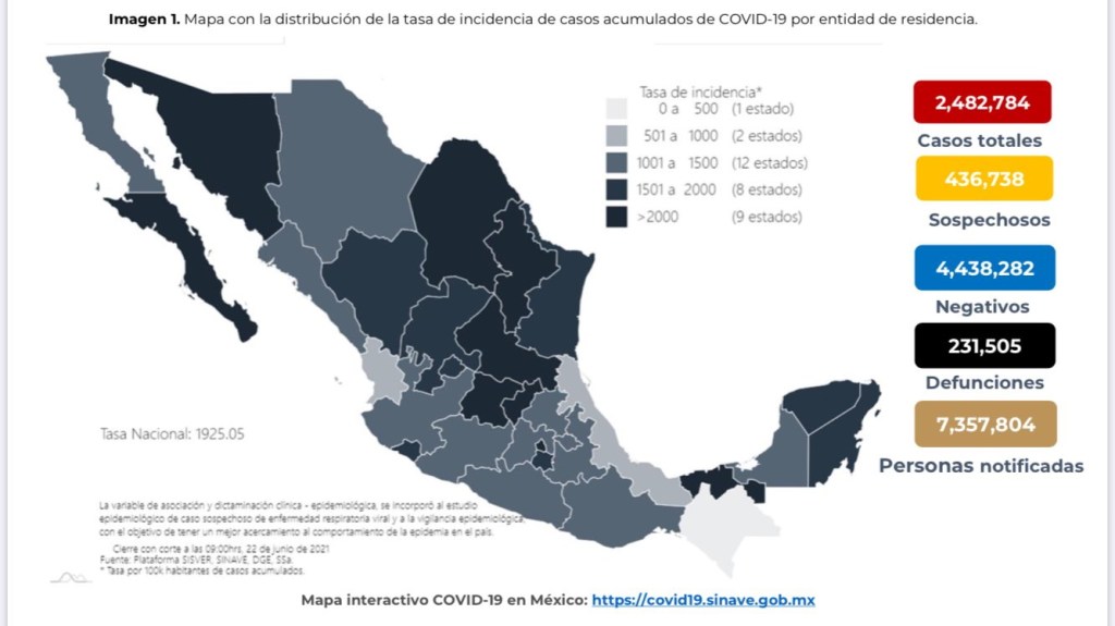 México alcanzó hoy los 2 millones 482 mil 784 casos y las 231 mil 505 muertes confirmadas por COVID-19