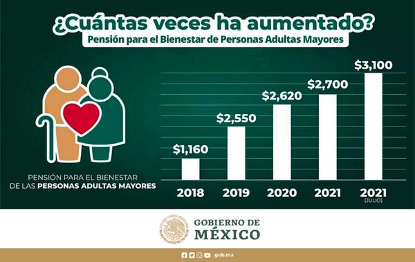 Ya es de 3 mil 100 pesos la pensión para personas adultas mayores