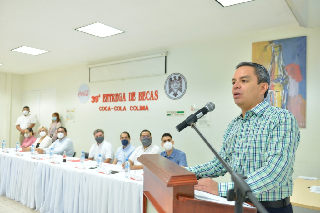 En la ceremonia de entrega número 39 de las Becas Coca-Cola Colima, realizada de manera presencial en el auditorio de la Embotelladora de Colima, S.A. de C.V., con 21 de los 200 beneficiarios, el rector de la Universidad de Colima, Christian Jorge Torres Ortiz Zermeño aseguró que “acciones como ésta generan en los estudiantes y sus familias una oportunidad para continuar con su formación académica”.