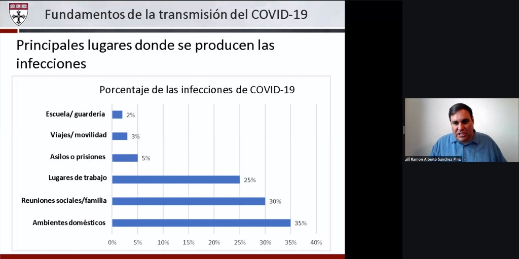 Con el fin de capacitar al personal directivo y administrativo para el posible regreso presencial en agosto, inició este lunes un curso virtual Dr. Ramón Sánchez, del Departamento de Salud Ambiental de la Universidad de Harvard.