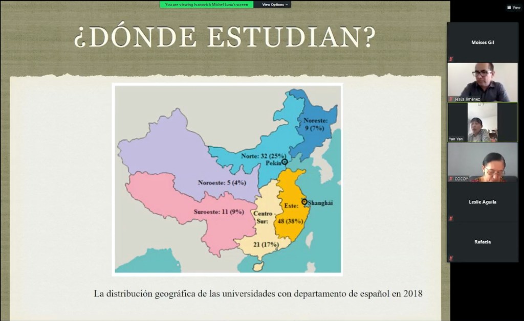 Como parte de los festejos por el 41 aniversario de la Facultad de Letras y Comunicación, se realizó hace unos días la conferencia virtual “Enseñanza del español en China en la actualidad”, a cargo de la maestra Yan – Yan, investigadora en la Universidad de Santiago de Compostela, España, quien explicó que la enseñanza formal de lenguas extranjeras en China empezó con las instituciones oficiales durante la segunda mitad del siglo XIX, cuando el gobierno necesitaba personas formadas para los asuntos exteriores.