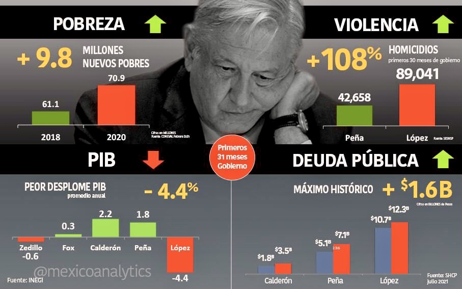Al iniciar el sexenio de AMLO, analistas como Enrique Campos Suárez proyectaban que la expectativa optimista era que la actual administración pudiera emular el crecimiento de los últimos tres sexenios, en torno a 2% como máximo, pero vino la pandemia y los pronósticos cambiaron. Para el primer trimestre de 2019 se registró el 1.3 (cifras revisadas), un año después con el -1.3 y para este las cifras preliminares proyectan: -3.6.
