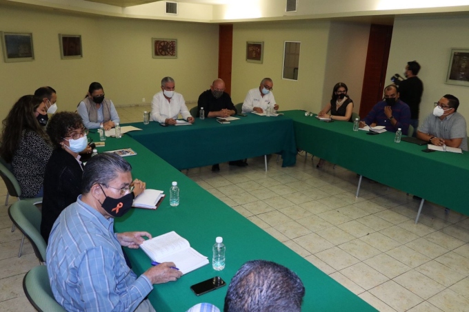 En reunión de trabajo, encabezada por el secretario general de Gobierno, Rubén Pérez Anguiano; el titular de Educación, Jaime Flores Merlo y el director de la Comisión Estatal para la Protección contra Riesgos Sanitarios (Coespris), Antonio Fermín Ochoa Meillón, se definieron las acciones y protocolos que deberán aplicar los planteles escolares que deseen llevar a cabo dichas actividades.