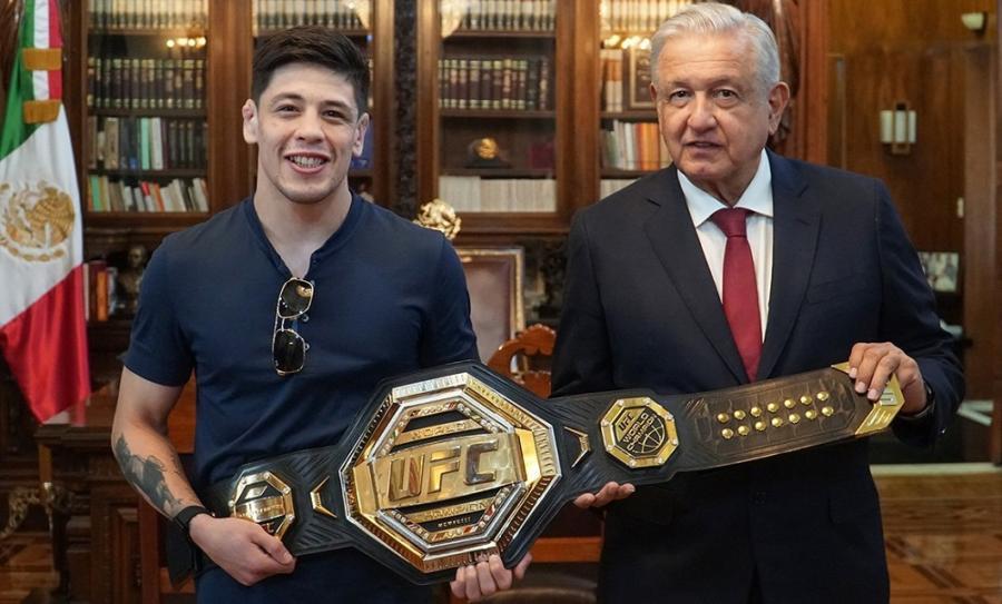 El peleador se convirtió en el primer mexicano con un título de la UFC, lo cual fue elogiado por López Obrador.