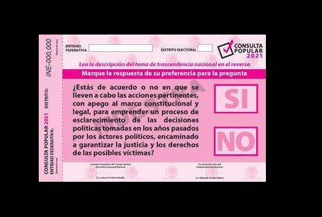 Explicó que las papeletas están impresas en tamaño media carta, en papel bond, y en su parte frontal se puede leer la pregunta objeto de la Consulta, que fue avalada por la Suprema Corte de Justicia de la Nación, así como las dos opciones de respuesta que estarán disponibles para que la ciudadanía manifieste su decisión: sí y no.