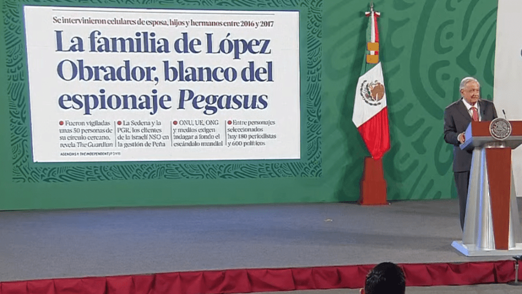 López Obrador resaltó que la administración que encabeza ya no espía ni a la oposición, ni a defensores de derechos humanos. Y señaló que no iba a instruir ni solicitar ninguna investigación sobre el caso.