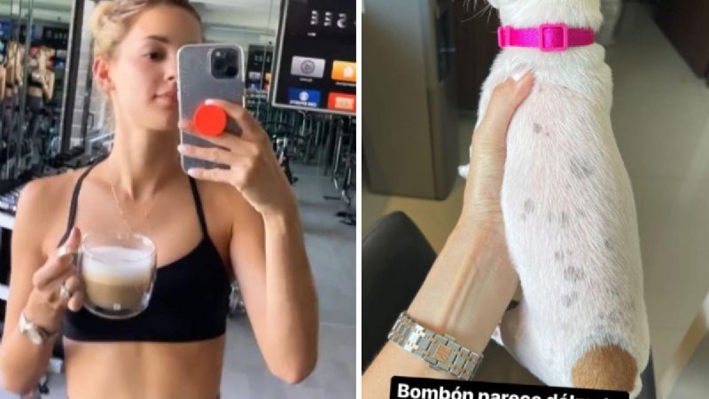 La influencer exhibe la prenda mientras presentas sus historias de Instagram, particularmente en una en la que está con un perro pequeño.