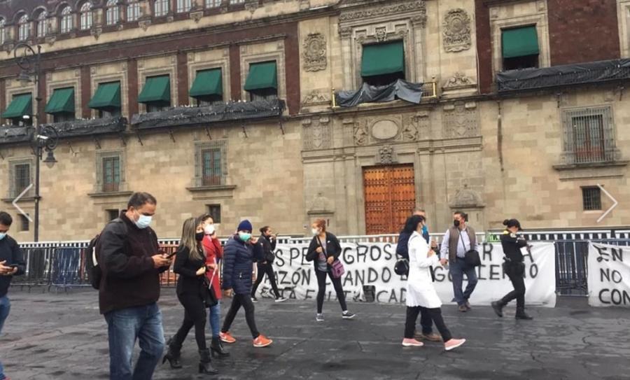 Los manifestantes -relata Reforma-, intentaron entregar su solicitud en la puerta de Palacio Nacional de la calle Moneda, pero les fue impedido el paso por parte de policías que protegen esa zona y fueron remitidos a la oficina de Atención Ciudadana, en la parte trasera del edificio.