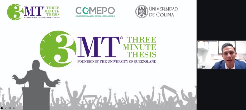 Espero, dijo el Dr. Christian Jorge Torres Ortiz Zermeño, rector de la Universidad de Colima al inaugurar de manera virtual el Concurso Institucional Three Minute Thesis (3 MT) o exposición de tesis en tres minutos, “que esta nueva actividad se convierta en un reto académico; estoy seguro que los organizadores, académicos, evaluadores y estudiantes de doctorado participantes harán de él una experiencia muy exitosa”.