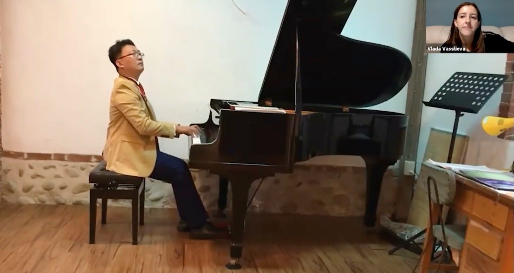 Con trece horas de diferencia horaria, el maestro Chen estuvo en vivo para hablar de las composiciones que interpretó, ante alumnos de la UdeC y público en general, en un evento coordinado por la Dirección General de Difusión Cultural, que contó con la excelente conducción y traducción de la maestra y pianista internacional Vlada Vassilieva.