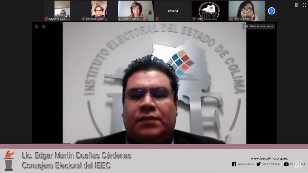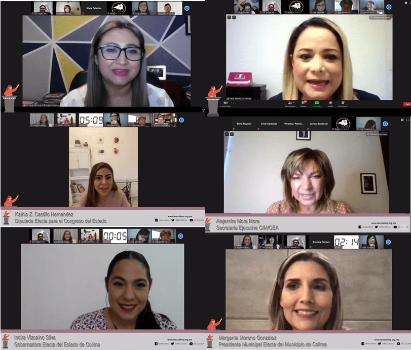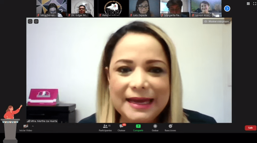 El primer evento comenzó de manera virtual a las 19:00 horas el pasado jueves, con la participación de Alejandra Mora Mora, Secretaria Ejecutiva de CIM/OEA, quien dictó la conferencia magistral “Empoderamiento de las mujeres en el ejercicio de cargos públicos”; bajo la moderación del Consejero Electoral, Edgar Martín Dueñas Cárdenas.