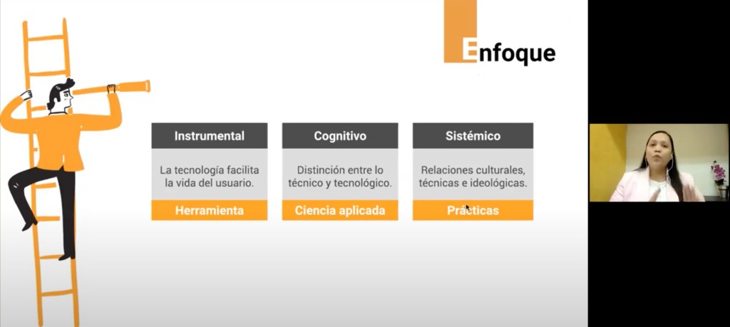 En su presentación, la académica destacó que para abordar las competencias digitales se deben abarcar los enfoques instrumental, cognitivo y sistémico; “el instrumental, porque facilita la vida del usuario cuando lo percibe como una herramienta; el cognitivo distingue entre lo técnico y tecnológico y lo ve como una ciencia aplicada, y el sistémico porque brinda relaciones culturales, técnicas e ideológicas”, dijo.