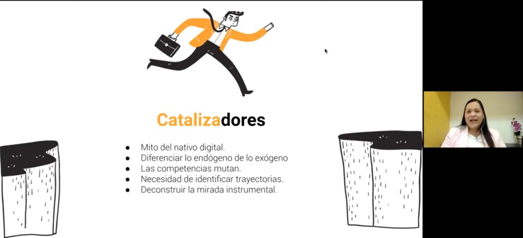 Finalmente, reconoció que no sólo se trata de decirle esto a terceros, “es también una crítica personal que estamos tratando de trabajar todos los días. Los desafíos que tenemos con el estudiantado cada vez son más nuevos y parece que se van juntando, pero en este proceso catalizador, apelamos y seguimos sosteniendo que el desarrollo de las competencias digitales docentes puede ser un ejercicio que nos permita trasladar y tener una mirada mucho más fresca, de hacia dónde queremos ir”.