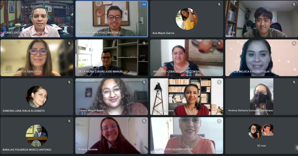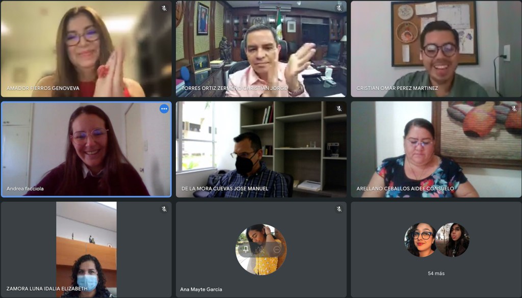 Después de la bienvenida, se abrió un espacio para orientar a las y los estudiantes visitantes sobre cómo será el intercambio virtual y también para introducirlos al ambiente académico, social y cultural de la Universidad de Colima.
